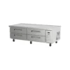 Chef Base Refrigerated Equipment Stand, 96-5/8″ W, side-mounted self-contained refrigeration, electronic control, temperature range 32° F to 41°F, (4) drawers, (3) 12″ x 20″ pan capacity per drawer, (pans sold separately), marine edge top, stainless steel construction, 5″ casters (2 with brakes), R-290 hydrocarbon refrigerant, 1/4 HP, cETLus, ETL Sanitation