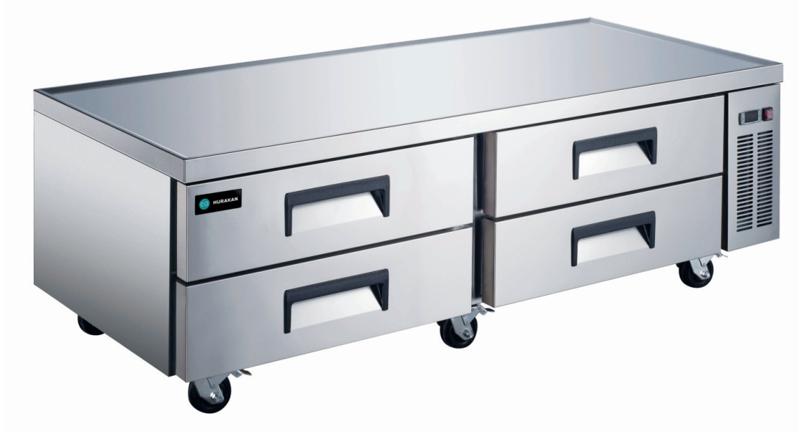 The Hurakan HKN-CB60R1 Chef Base Refrigerator is a high-performance, heavy-duty refrigeration unit designed to optimize space and efficiency in professional kitchens. It combines cold storage and workstation functionality, allowing chefs to access ingredients easily while supporting heavy countertop cooking equipment.