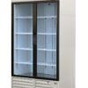 Two adjustable glass shelves provide flexibility for product presentation, and the rear sliding doors allow for quick and easy access when restocking or serving customers.