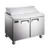 HURAKAN Refrigerated Sandwich Prep Table, 60″W, 2 door, 15 cu.ft. capacity, self-contained refrigeration, fits (16) 1/6 size pans, solid swing doors, 33 to 41°F temperature range, includes (2) shelves, stainless steel and aluminum construction, 1/4+ HP, ETLus, ETL sanitation