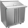 Premium Mega-Top Prep Table, 27-3/4″W x 36-1/8″D x 44-5/8″H, (2) stainless steel drawers, 9.5 cu. ft. capacity, 3 + 9 pans, 115V/60Hz, 1/10 HP, 1.5A, R290 hydrocarbon refrigerant, electronic controller, temperature range 32°F to 41°F, ambient up to 100°F/65% RH, Ecomateâ„¢ insulation, exclusive high-capacity base design, full stainless-steel exterior & interior, insulated lid, unique bottom air panel, fixed top/drawer pan dividers, high-strength slides, full-length recessed handles, magnetic one-piece door gaskets, 5″ casters (front with brakes), NSF-7, ETL, DOE compliant, Made in North America.