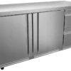 Premium Refrigerator Undercounter, 60-3/8″W x 30-1/8″D x 35-3/4″H, (4) stainless steel drawers, 20.6 cu. ft. capacity, 115V/60Hz., 1/4 HP, 2.5A, R290 hydrocarbon refrigerant, electronic controller with digital display, temperature range 32°F to 38°F, ambient up to 100°F/65% RH, Ecomateâ„¢ insulation, exclusive high-capacity base design, full stainless-steel exterior & interior, reversible condensing fan motor, hermetic compressor, epoxy-coated evaporator, fixed pan dividers, high-strength slides (88 lbs./drawer), full-length recessed handles, magnetic one-piece door gaskets, 5″ casters (front with brakes), NSF-7, ETL, DOE compliant, Made in North America.